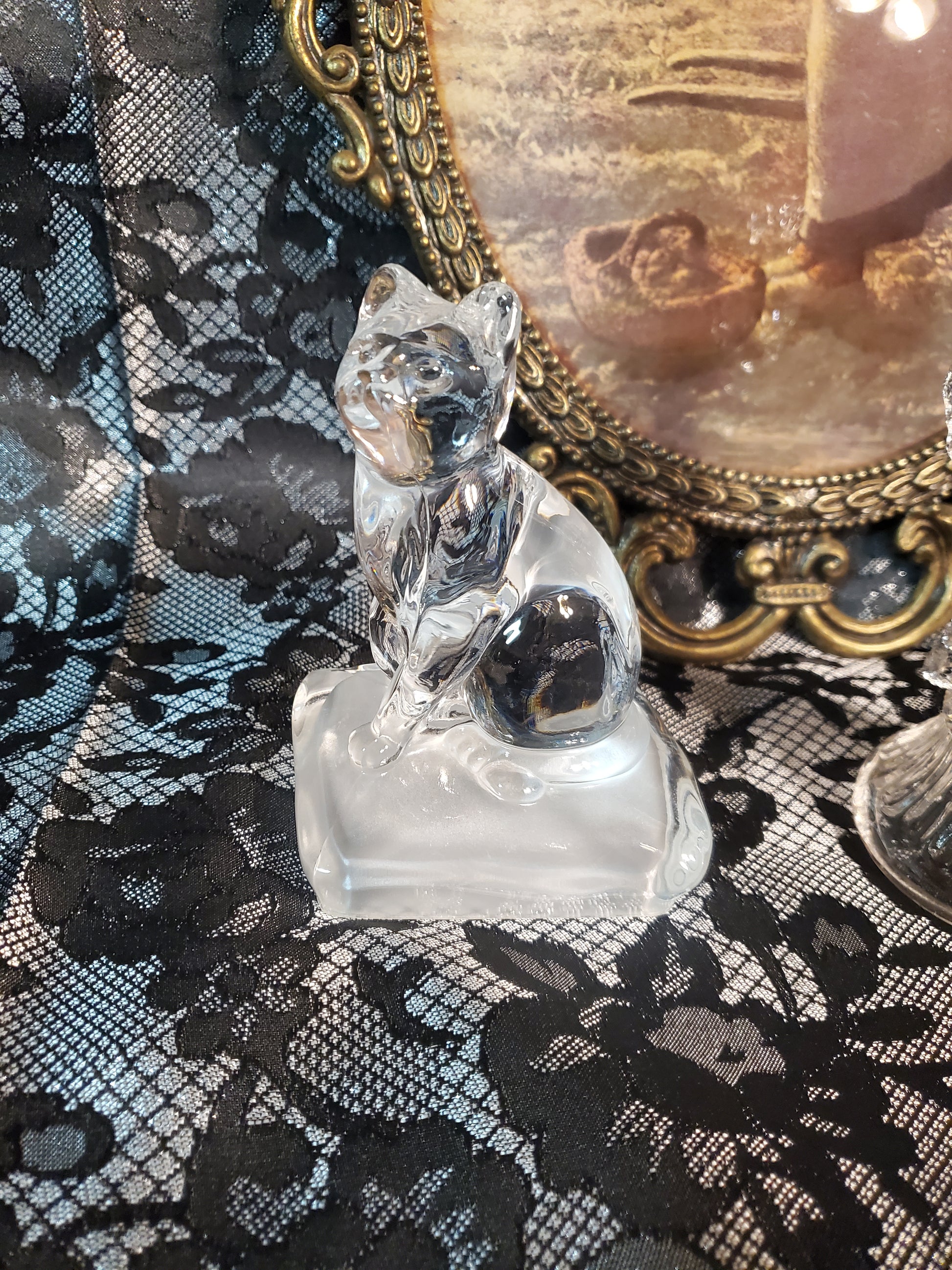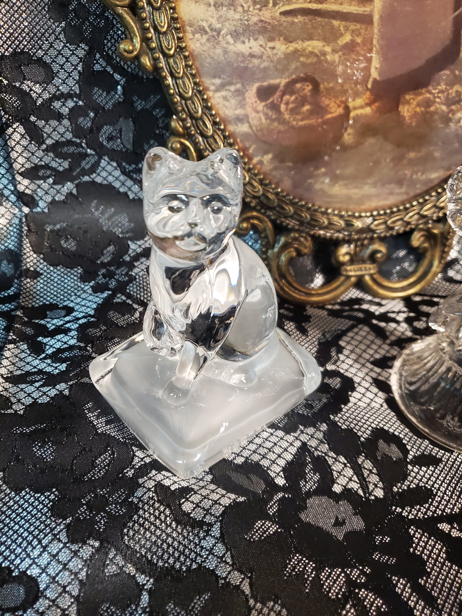 Vintage Cristal d'Arques Crystal Cat on Frosted Pillow